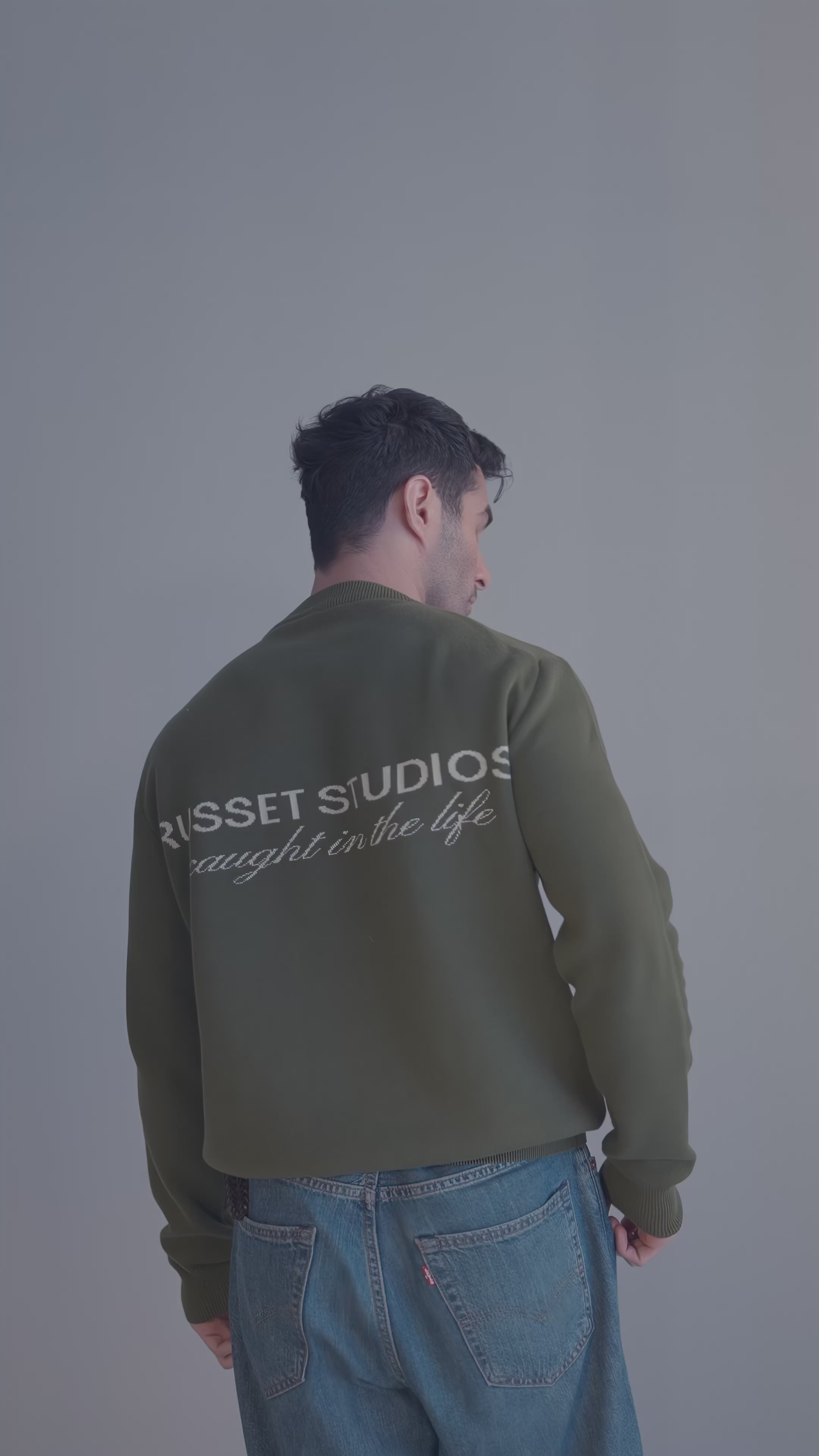 Russet Jacquard Sweater, crafted in soft, high-quality combed cotton for a smooth feel and refined finish. This piece features our signature Russet logo woven into the front, paired with “Russet Studios” jacquard branding across the back